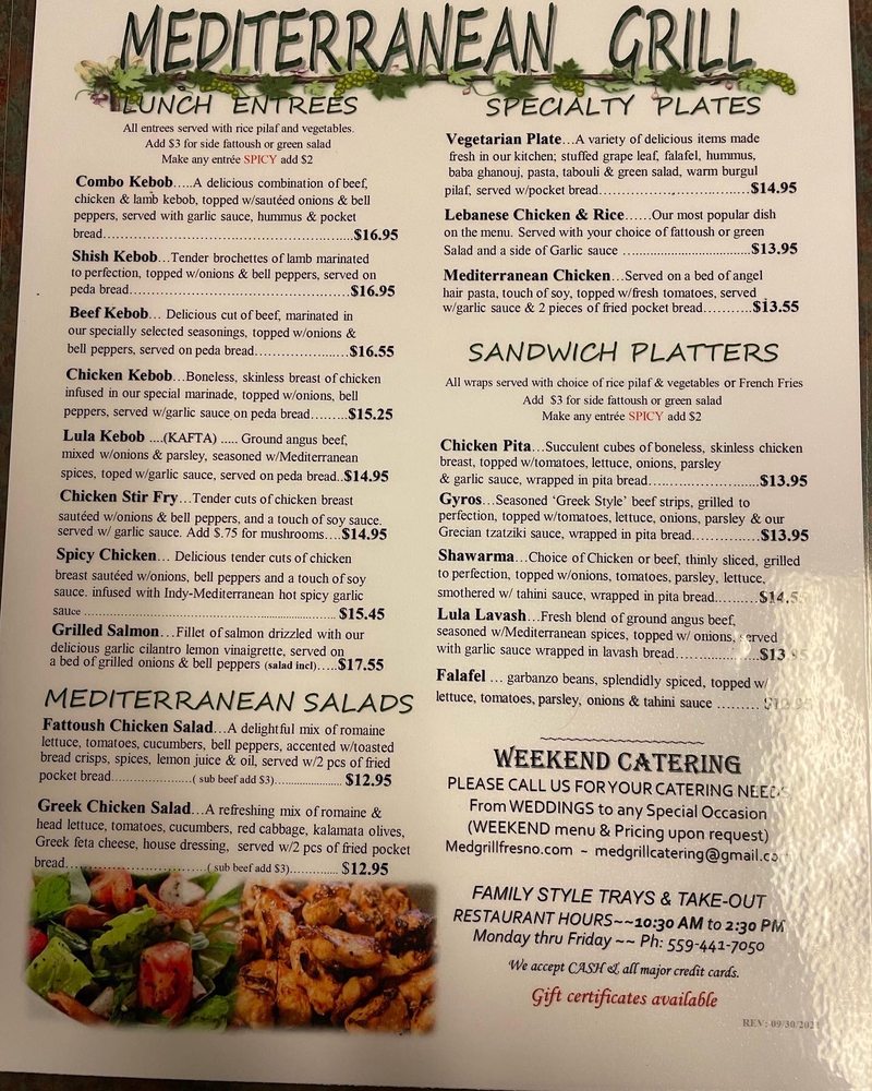 Mediterranean Grill & Cafe Menu (2025 Update)
